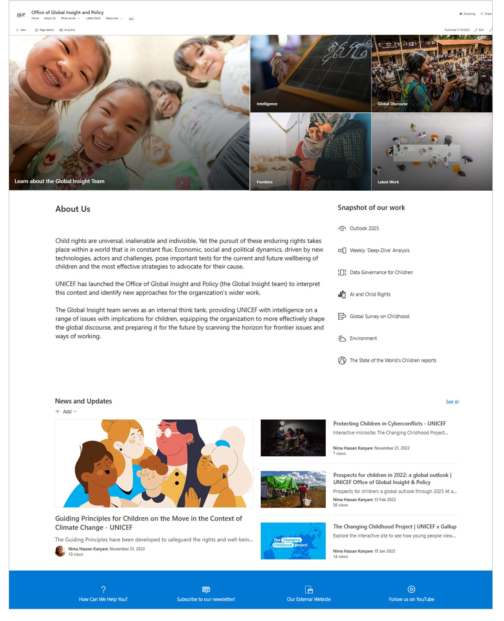 Issue: The newly established Global Office of Insight and Policy of UNICEF, required an internal facing intranet site to reach UNICEF staff globally with key intelligence and analysis products.